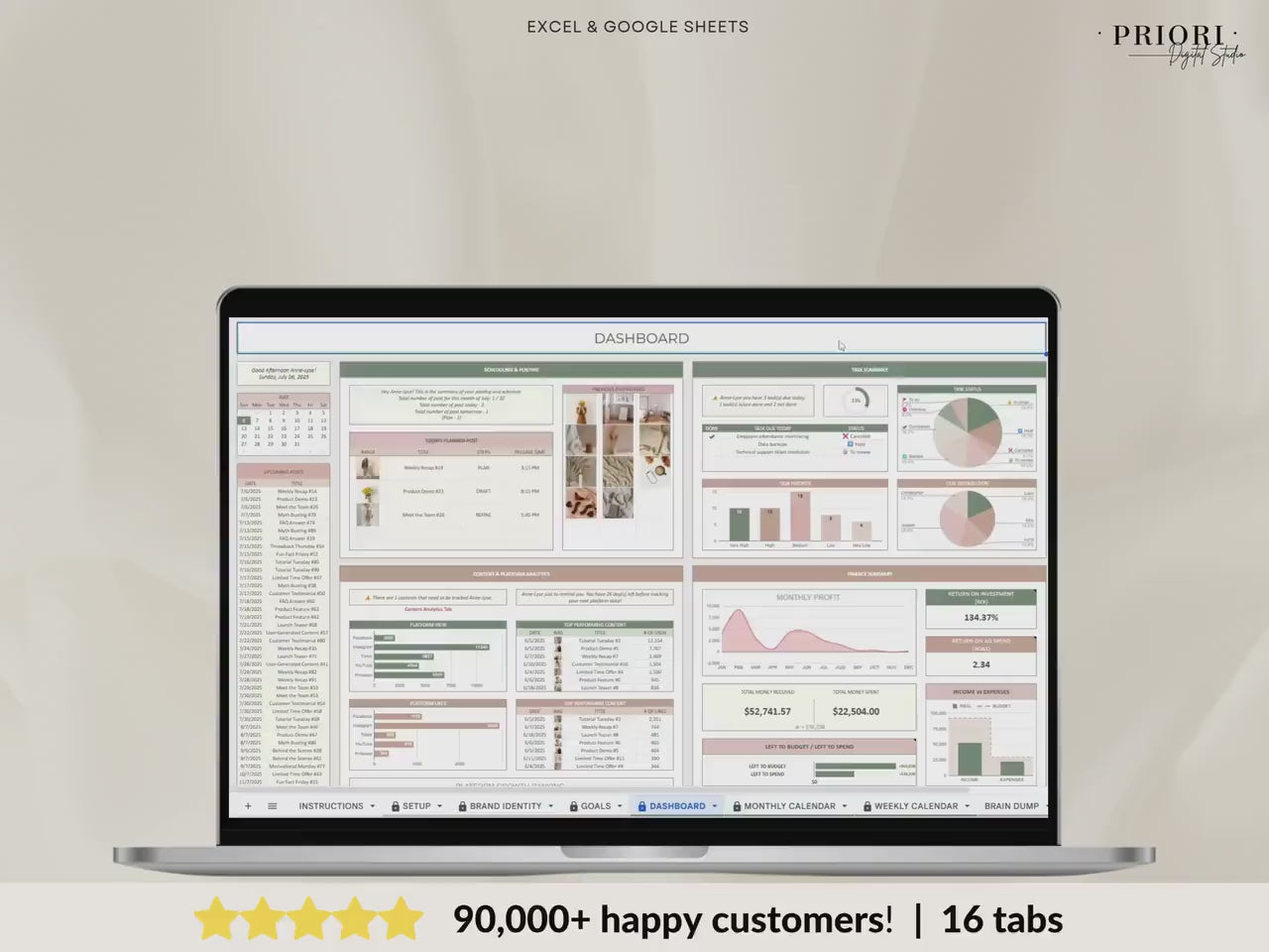 This All-in-One Social Media Planner includes 16 tabs divided in 4 sections: